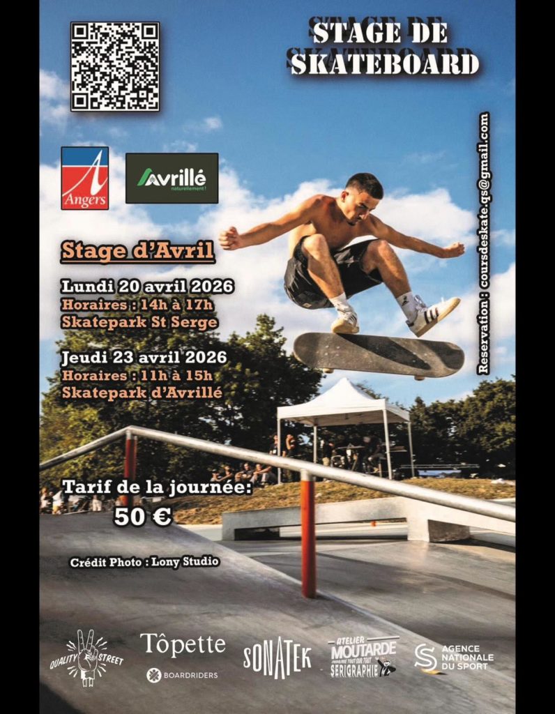 Lundi 20 avril de 14h à 17h au Skatepark St Serge (Back up salle Salpinte si mauvaise météo)